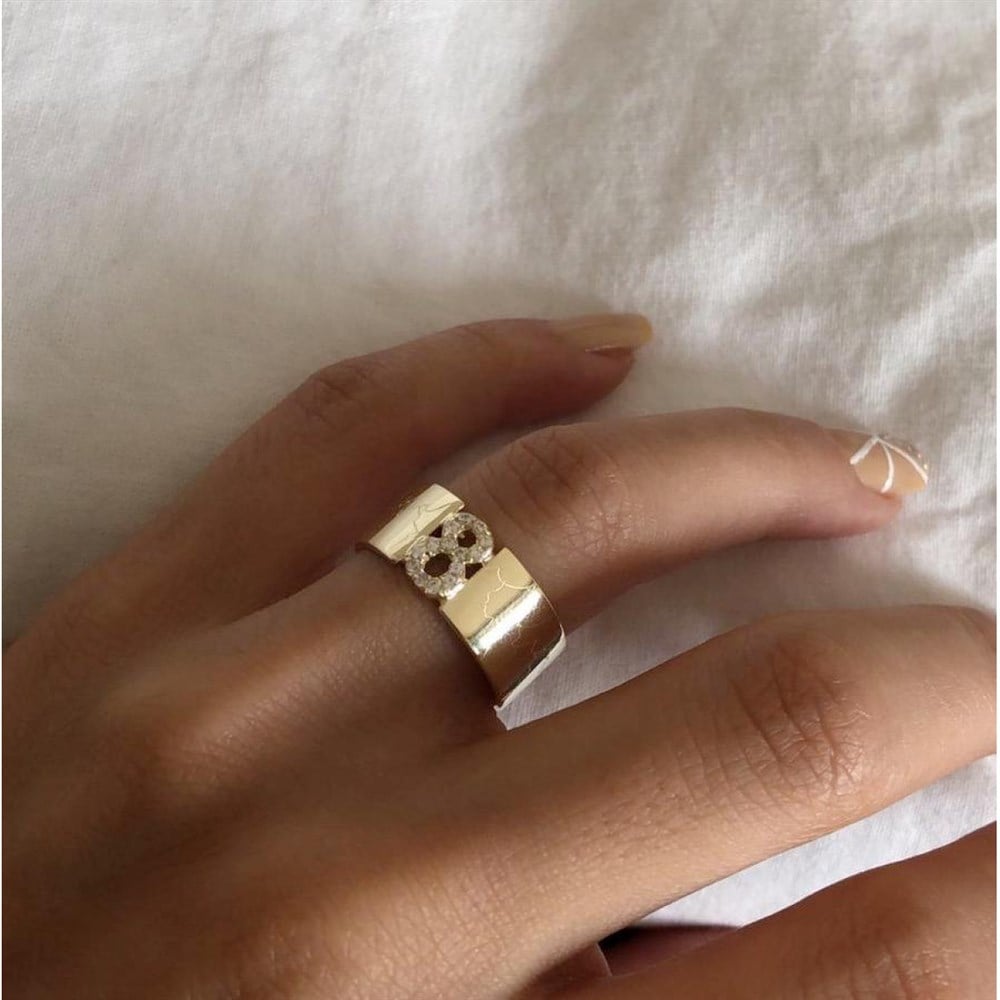 925 ayar gümüş üzeri altın kaplama. Rose,gold,silver renk seçeneği mevcut. Yazdıracağınız harf/sayıyı ve parmak ölçünüzü belirtmeyi unutmayınız.