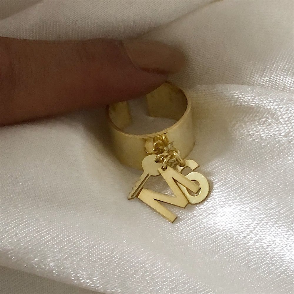 Anahtar sembolü sabittir. M harfi ve 6 sayısı örnek olarak yazılmıştır. M ve 6 yerine istediğiniz harf/rakamı yazdırabilirsiniz. 2 harf ya da 2 rakamda yazdırabilirsiniz. Arkası ayarlanabilirdir, ölçü gerektirmez. Gold-rose-silver renk seçeneği mevcuttur. Sipariş notu kısmında ürün özelliklerini belirtiniz.
