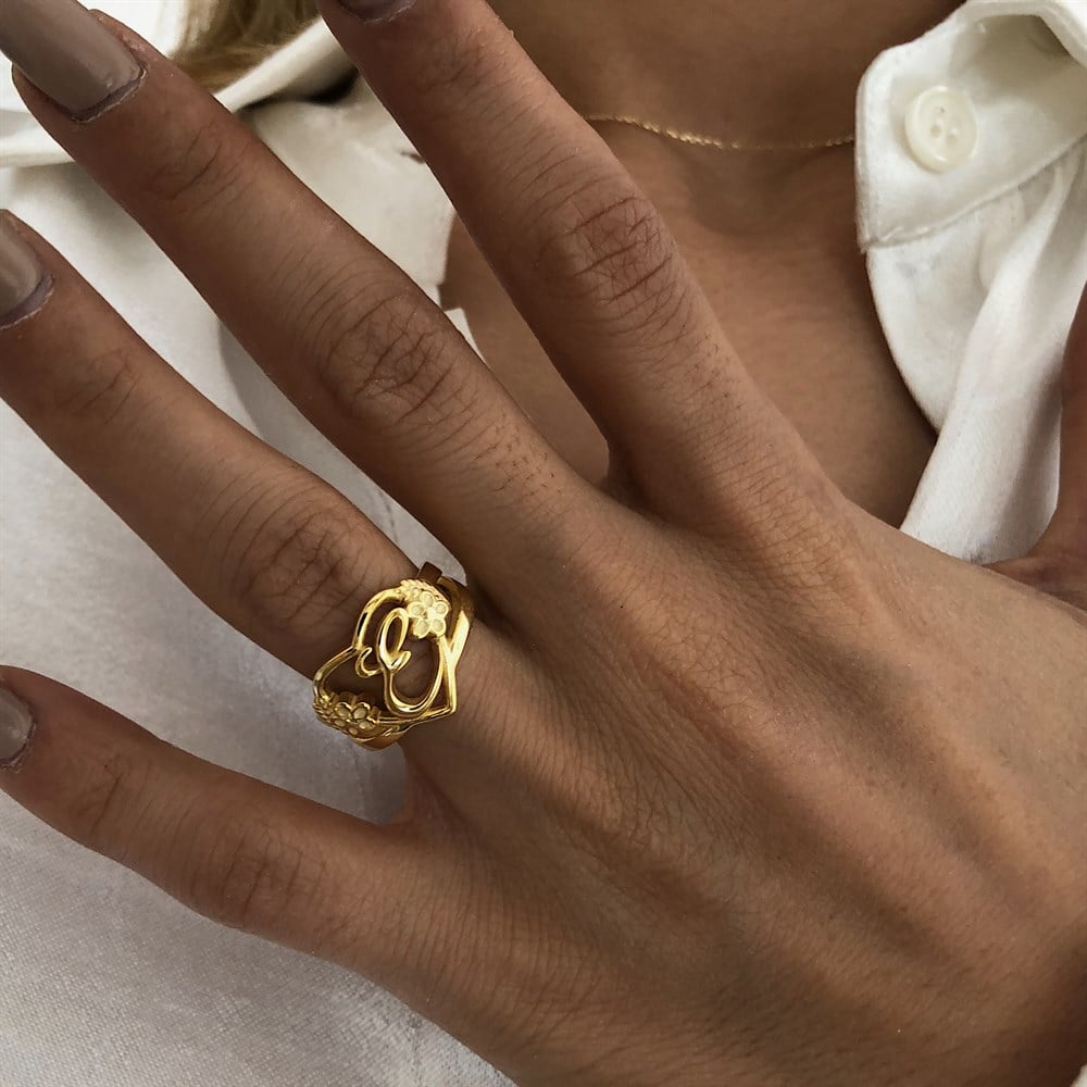 925 motifli harf yüzük istediğini yazdır
