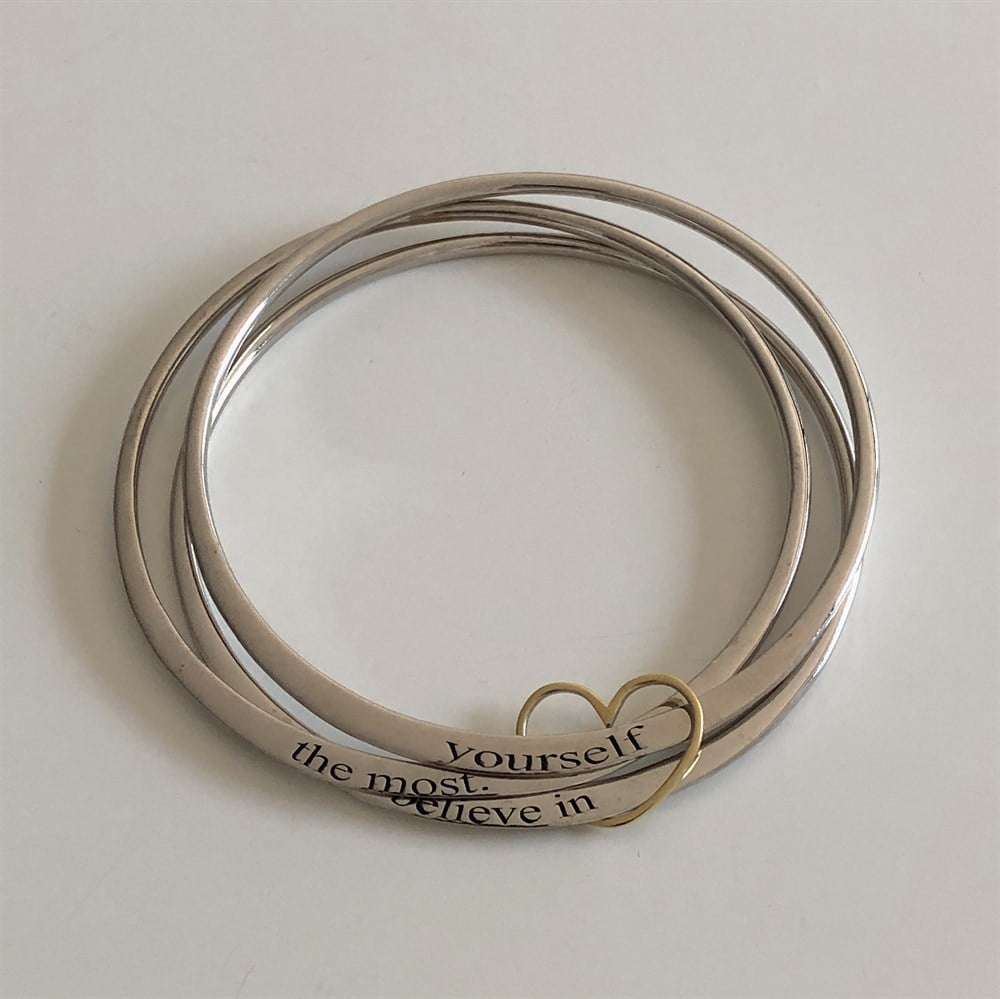 3 bileklik+1 kalp fiyatıdır. ''believe in yourself the most.'' örnek olarak yazılmıştır. Her üç kelepçeye dilediğiniz sayı-isim-kelime-harf-tarihi yazdırabilir ya da sembolü çizdirebilirsiniz. Renk olarak GOLD-ROSE-SILVER seçeneklerine bağlı kalarak dilediğiniz rengi dilediğiniz kelepçe ya da kalp için seçebilirsiniz. Ok roses tasarım ürünü kendi istekleriniz ile dahada güzel hale getirip anılarınızı ölümsüzleştirin diye oluşturulan ''sipariş notu'' kutucuğunu özgürce doldurabilirsiniz.